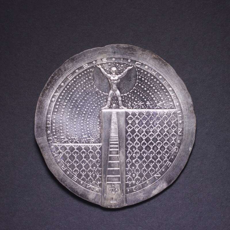 Medaille "Altes bewahren - Neues fördern" auf 10 Jahre kulturelles Geschehen im romanischen Keller in der Hypothekenbank 1970 - 1980