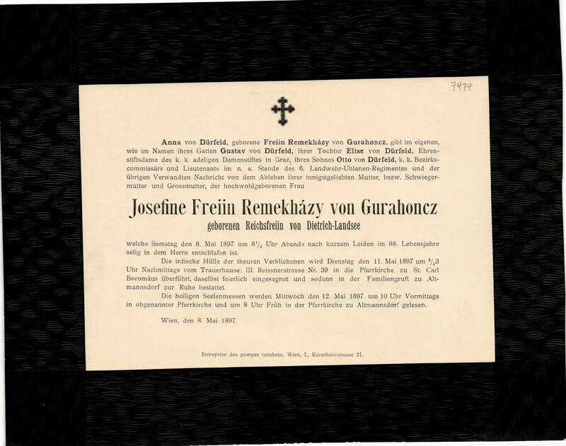 Josefine Remekházy von Gurahoncz, Freiin (†1897)