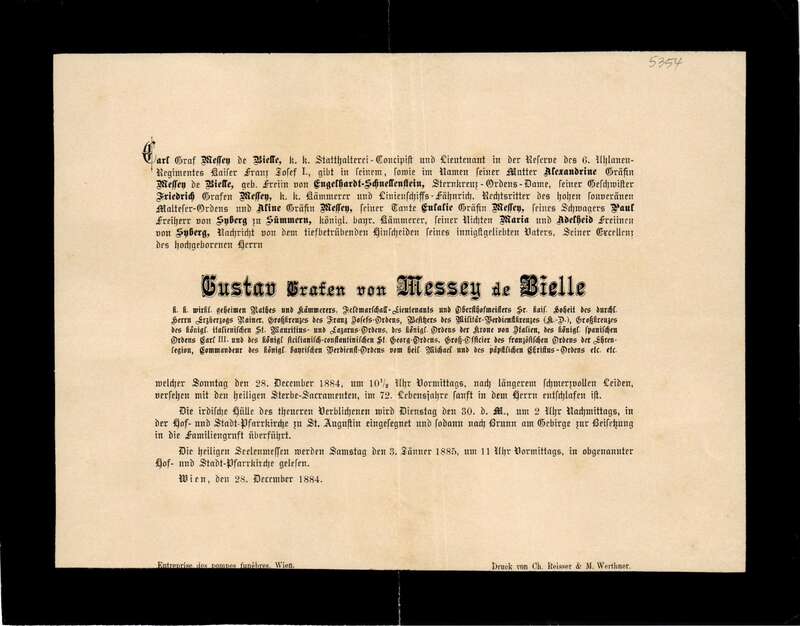 Gustav Messey de Bielle, Graf (†1884)