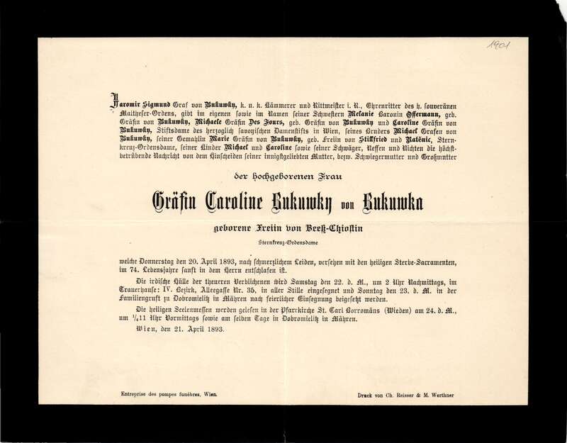 Caroline Bukuwky von Bukuwka, Gräfin (†1893)