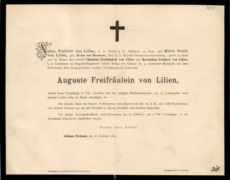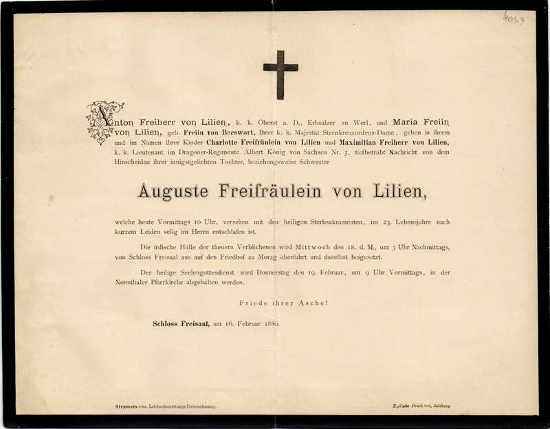 Auguste Lilien, Freifräulein von (†1880)